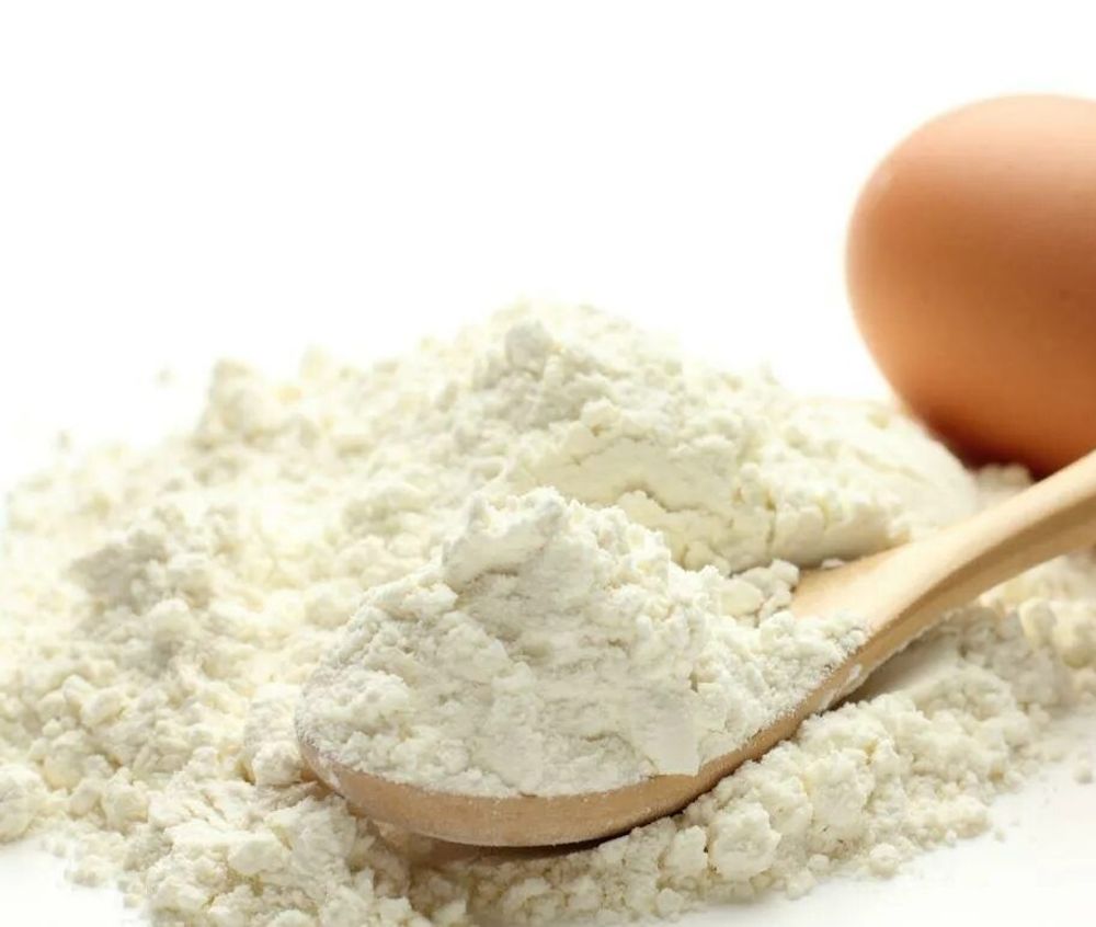 Сухой яичный белок — это продукт, произведенный из белков свежих яиц, полученных в результате отделения желтков. Обладает лучшими характеристиками при взбивании, чем обычный куриный белок, обладает высокими характеристиками по стойкости пены. Сухой белок — хороший пенообразователь, способный удерживать сахар. Это обусловливает его применение при производстве кремов, зефира, суфле, безе, пирожных и пр. 1 кг сухого яичного белка соответствует приблизительно 310-330 свежим яичным белкам.
