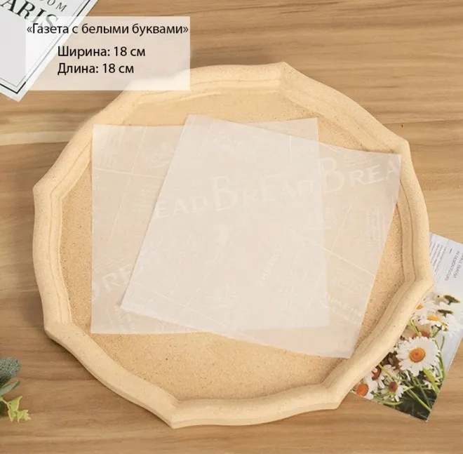 Бумага упаковочная для БЕНТО-торта "Газета с белыми буквами" 18х18 см, 20 шт