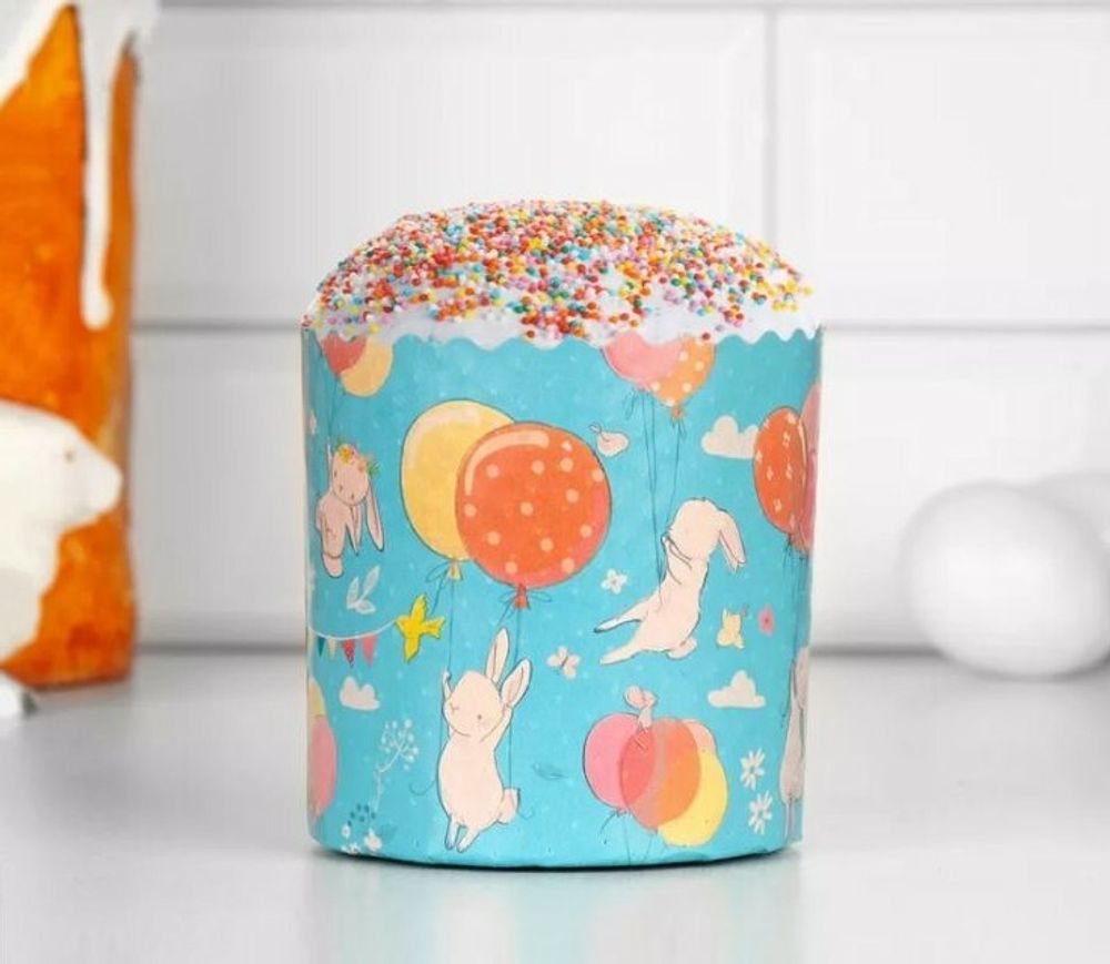Форма для кулича "Зайцы на шарах" D 9см, H 9см