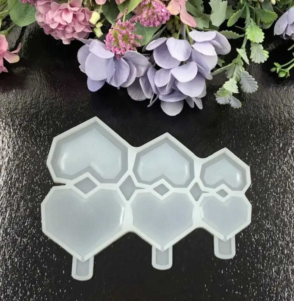 Форма силиконовая для леденцов "Сердце гранёное"