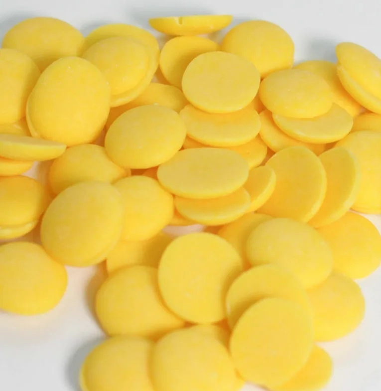 Кондитерская глазурь лауринового типа, обладает высокой пластичностью. Диски диаметр 14-16 мм. Глазурь имеет насыщенный желтый цвет и нежный лимонный вкус, который гармонирует со вкусом высококачественной шоколадной глазури. После покрытия изделий при резке на поверхности изделий не трескается и имеет ровное и тонкое покрытие.