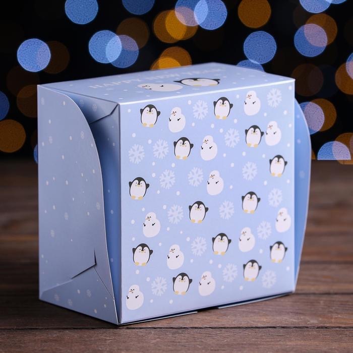 Коробка без окна "Новый год в Антарктике" 16х16х10 см