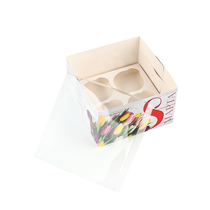 Коробка для капкейка "8 Марта", 16*16*10 см