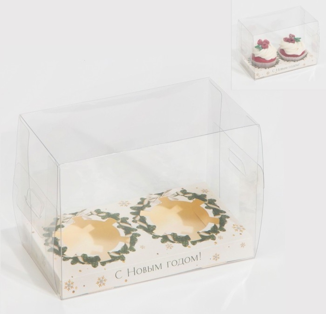 Коробка для капкейков на 2шт "Веночки" с прозрачным куполом 16х8х11,5 см