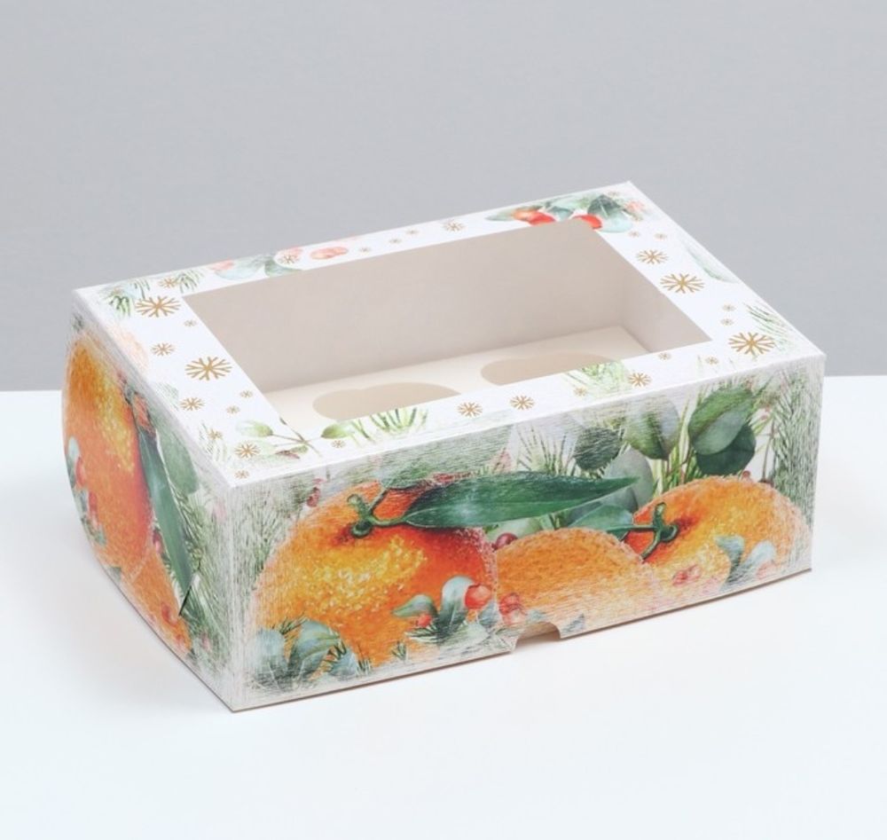 Коробка для капкейков на 6шт "Апельсины" с окном 25х17х10 см
