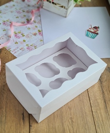 Коробка для капкейков с окном на 6 капкейков белая 25х17х10 см