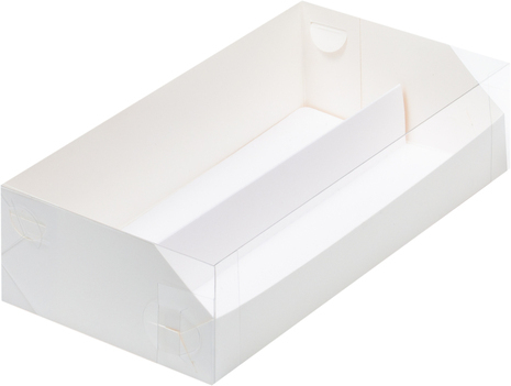 Короб для 12 макарон с ложементом и прозрачной крышкой белый из картона и пластика, 21х11х5,5 см