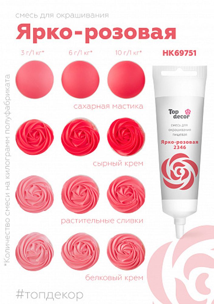 Краситель гелевый TOP DEKOR Ярко-розовый 100 г