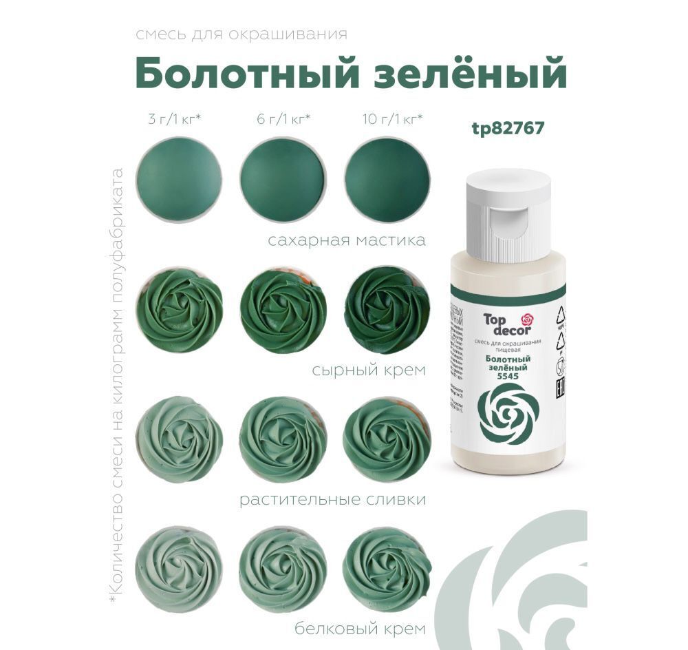 Краситель гелевый водорастворимый TOP DEKOR Болотный зелёный 30 г
