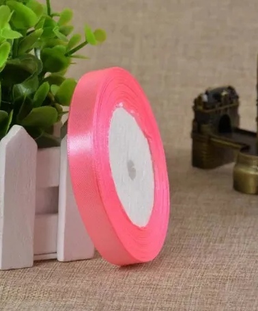 Лента атласная 12 мм 23 м, ярко-розовая