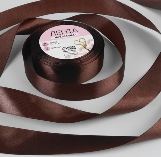 Лента атласная 25 мм 23 м, шоколадная
