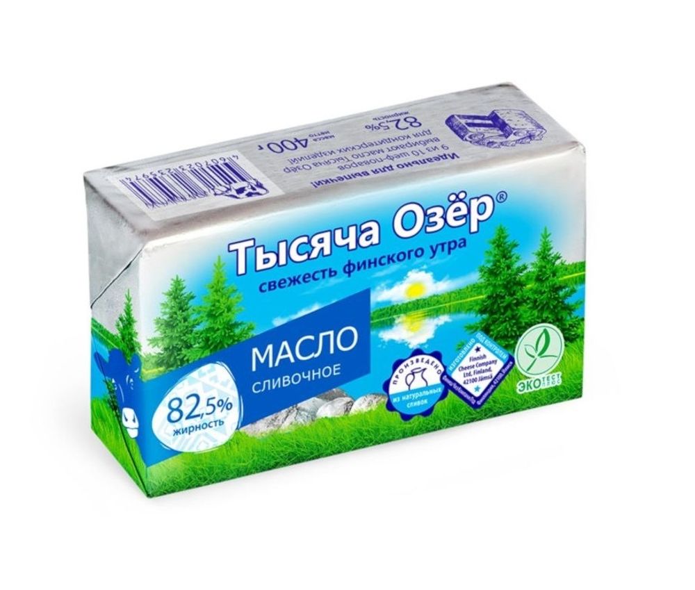 Масло сливочное 82,5%, Тысяча озер 400 г