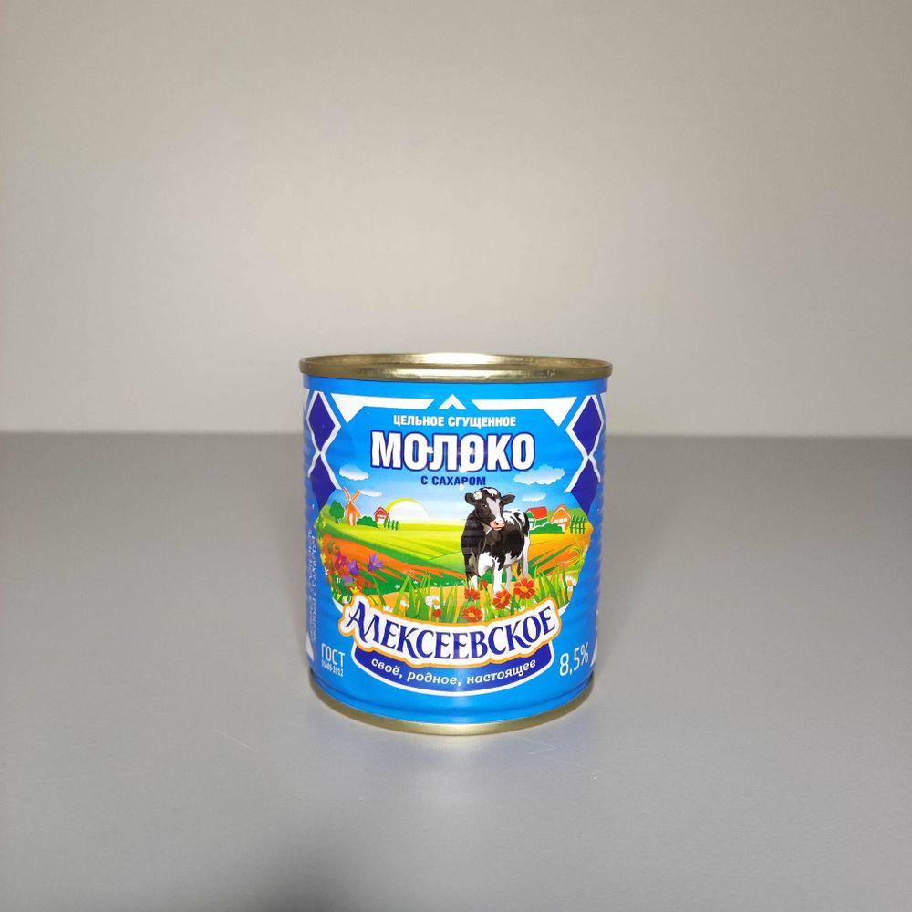 Молоко сгущенное Алексеевское - это 100% натуральный продукт, с нежным сливочным вкусом. В составе ничего лишнего: только цельное молоко и сахар - всё в полном соответствии с нормами ГОСТа. Срок годности - 18 месяцев при температуре от 0°С до +10°С и относительной влажности воздуха не более 85%; 12 месяцев при температуре +23(±2)°С и относительной влажности воздуха не более 85%
