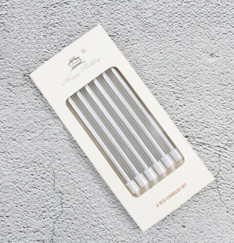 Набор свечей для торта, серебряный металлик, 10 см 6 шт