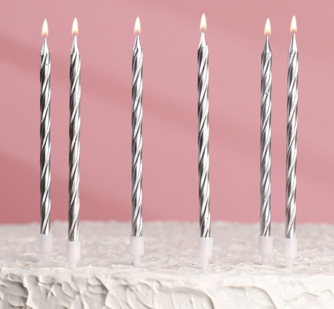 Набор свечей для торта, серебряный металлик, 14 см 6 шт