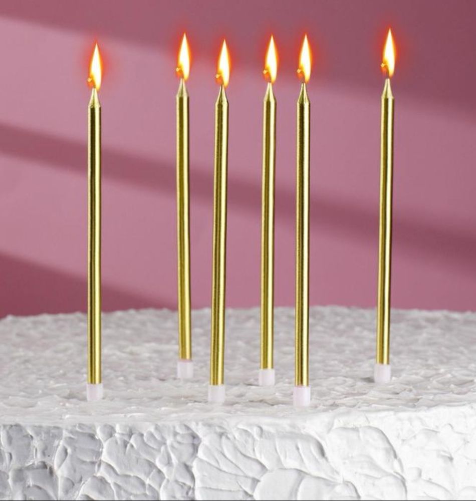 Набор свечей для торта, золотой металлик, 13 см 6 шт