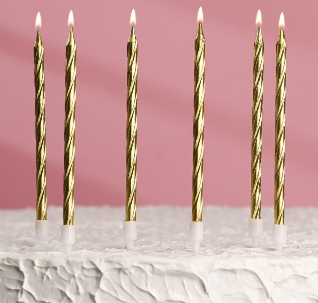Набор свечей для торта, фиолетовый металлик, 14 см 6 шт