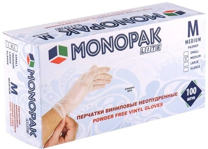 Перчатки виниловые неопудренные одноразовые, размер M - одна пара