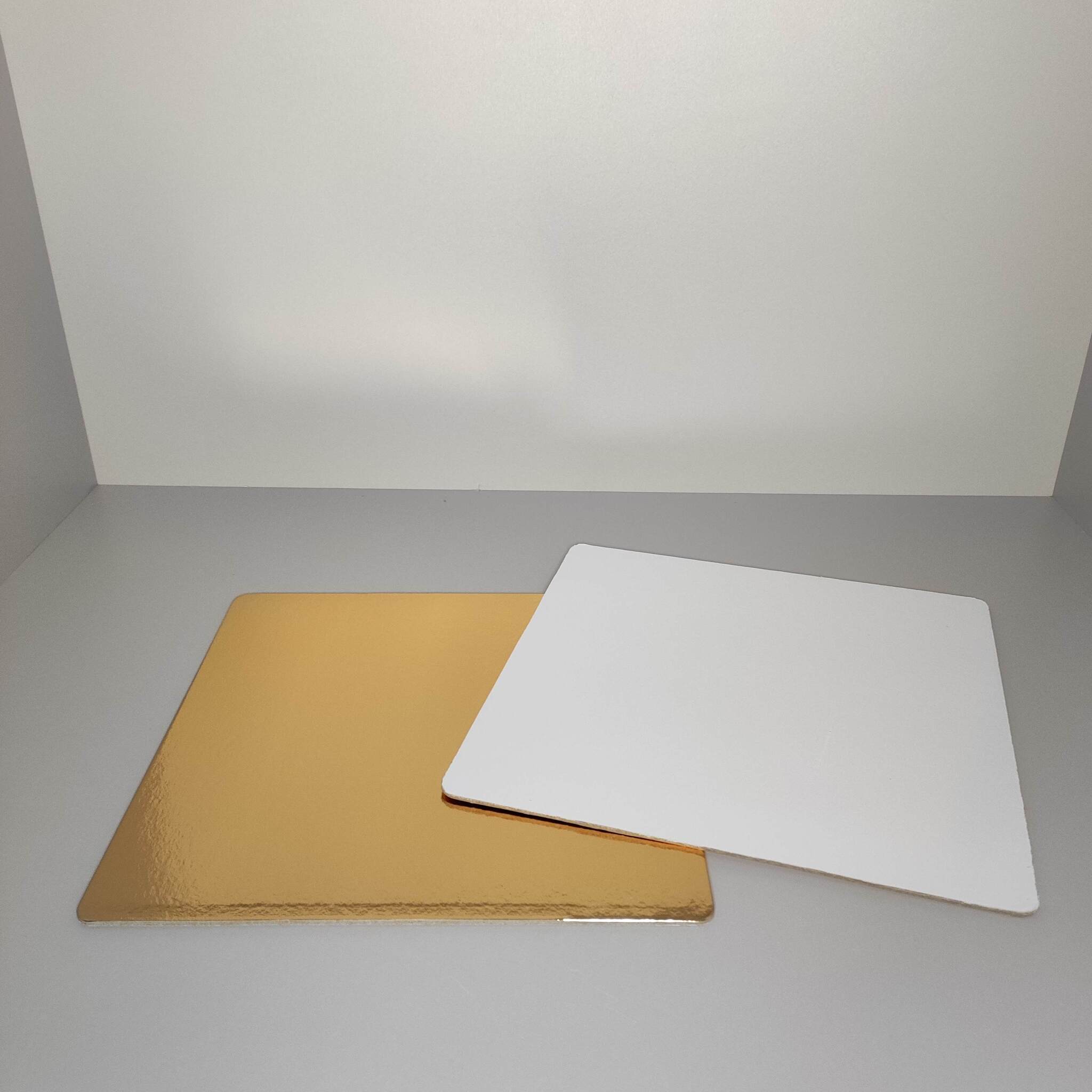 Подложка для торта квадратная белая/золотая 3,2 мм 25х25 см