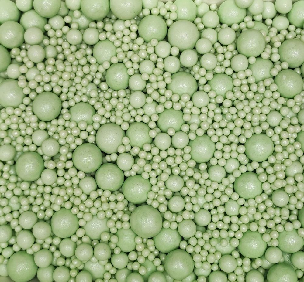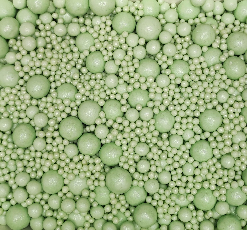 Посыпка воздушный рис в жемчужной глазури мятного цвета. Легкие, хрустящие, легко крошатся при надавливании.