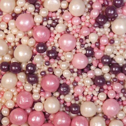 Посыпка воздушный рис в жемчужной глазури серебряного, сиреневого и розового цвета. Легкие, хрустящие, легко крошатся при надавливании.