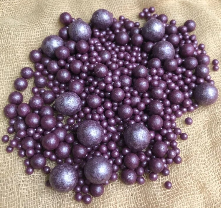 Посыпка воздушный рис в жемчужной глазури сиреневого цвета. Легкие, хрустящие, легко крошатся при надавливании.