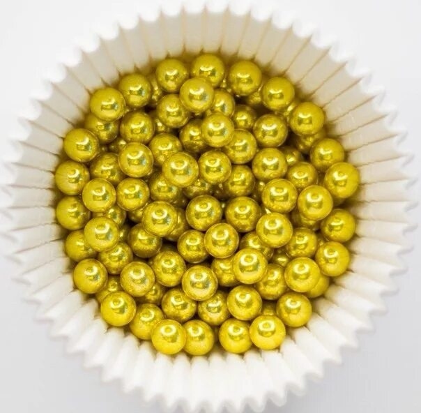 Сахарное драже для декора тортов и других десертов в виде золотых бусинок.