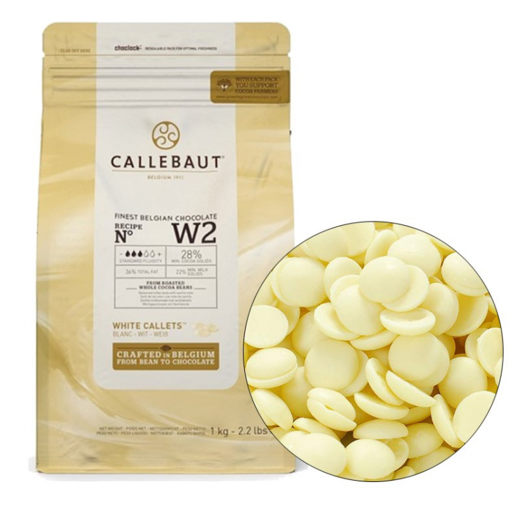Белый шоколад Callebaut со сбалансированным вкусом молока и сливок, с натуральной ванилью сорта Bourbon.