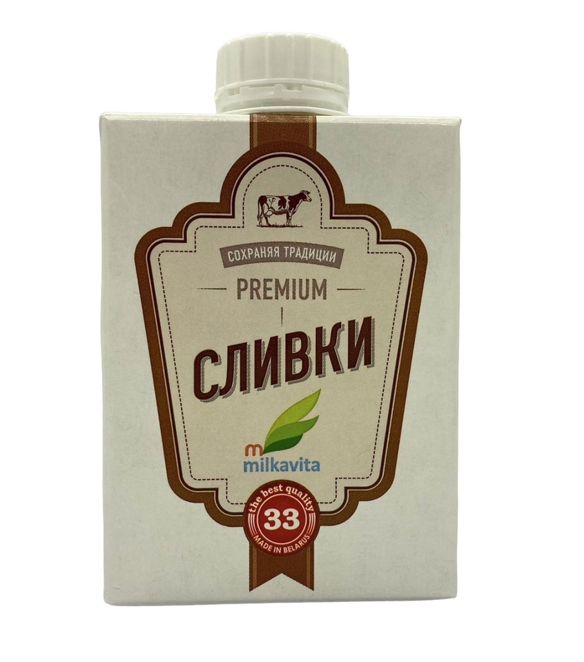 Ультрапастеризованные жирные сливки 33%. Состав: нормализованные сливки.