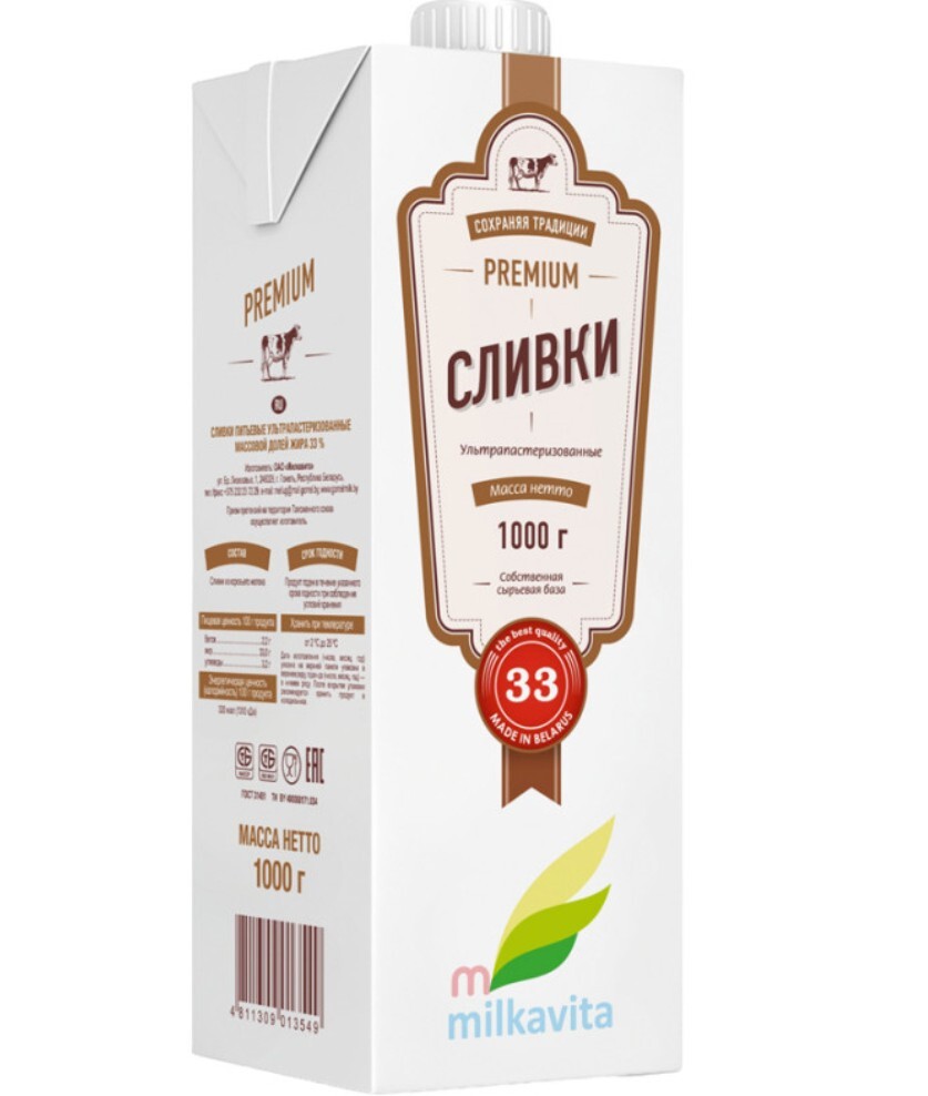 Сливки 33%, Милкавита 1 л