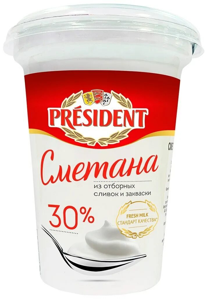 Сметана 30%, President. Состав: нормализованные сливки из коровьего молока, закваска.