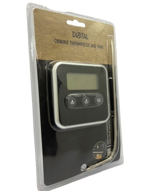 Выпекая разнообразные кондитерские изделия или запекая какие-либо блюда в духовке, необходимо постоянно контролировать уровень температуры в духовке. Идеальным помощником для этого станет термометр. Электронный термометр обладает стильным и одновременно простым дизайном, сможет точно определить температуру в духовке, также устройство оснащено таймером и щупом, с помощью которого можно определить температуру блюда. Максимальная рабочая температура 250 градусов.