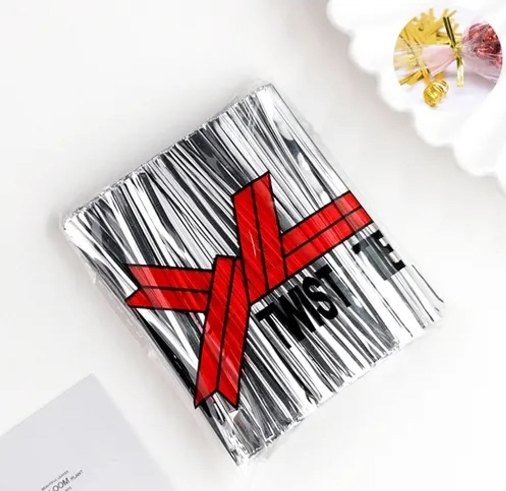 Проволочный зажим для пакета (твист-лента), ширина 8 см, 50 штук