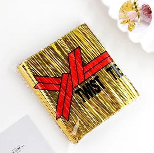 Зажим для пакетов проволочный (твист-лента) 8см золото, 50 шт