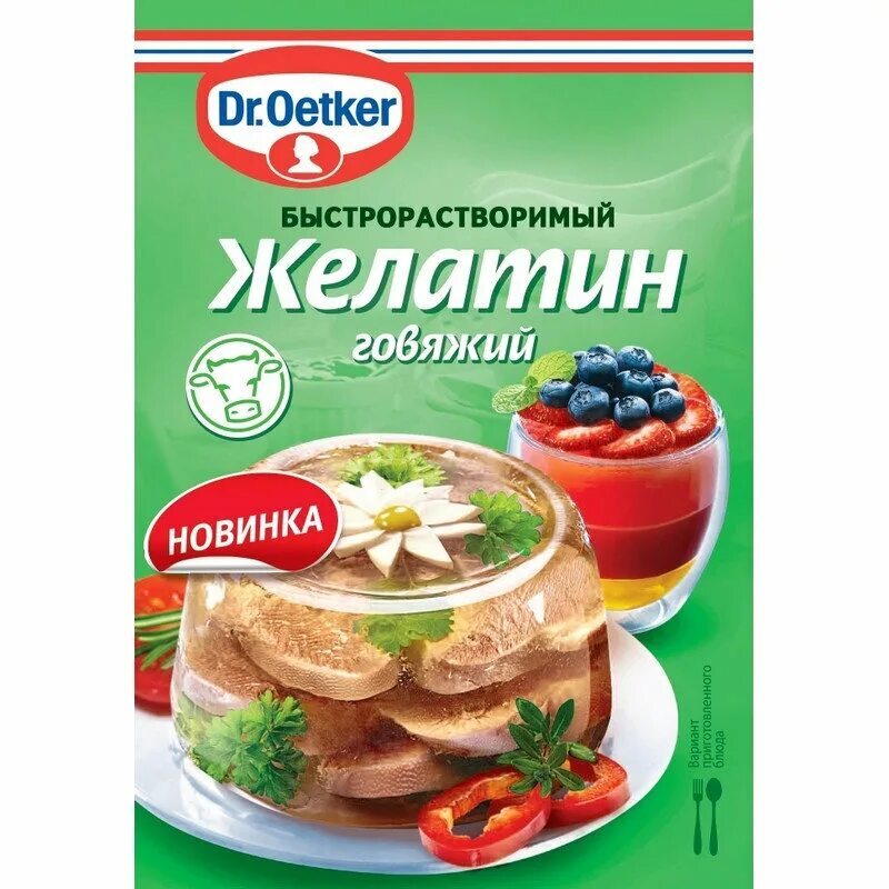 Желатин быстрорастворимый говяжий Dr.Oetker - натуральное высококачественное желирующее средство. Идеально подходит для приготовления широкого ассортимента современных и классических десертов, например, желе, суфле и муссов. Дозировка: 1 упаковка расчитана на 1 литр жидкости