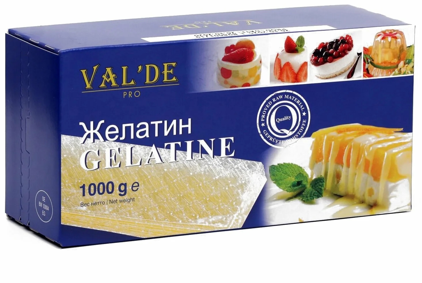 Листовой желатин Val'de в пластинах по 5 грамм имеет отличные потребительские и функциональные свойства, не влияет на вкус, цвет и запах готового продукта. С помощью листового желатина можно готовить одновременно несколько блюд с различной степенью желируемости. Кроме того, продукты, произведенные с применением листового желатина, в процессе хранения дольше сохраняют свой внешний вид и форму.