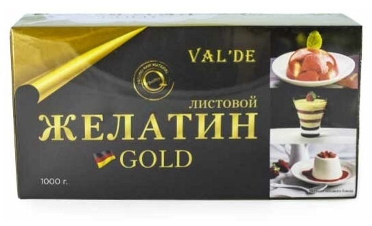 Листовой желатин Val'de в пластинах по 5 грамм имеет отличные потребительские и функциональные свойства, не влияет на вкус, цвет и запах готового продукта. С помощью листового желатина можно готовить одновременно несколько блюд с различной степенью желируемости. Кроме того, продукты, произведенные с применением листового желатина, в процессе хранения дольше сохраняют свой внешний вид и форму.